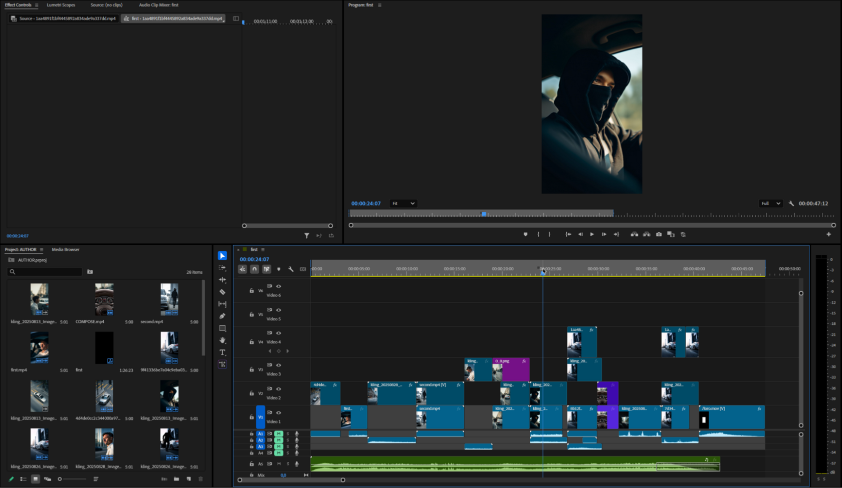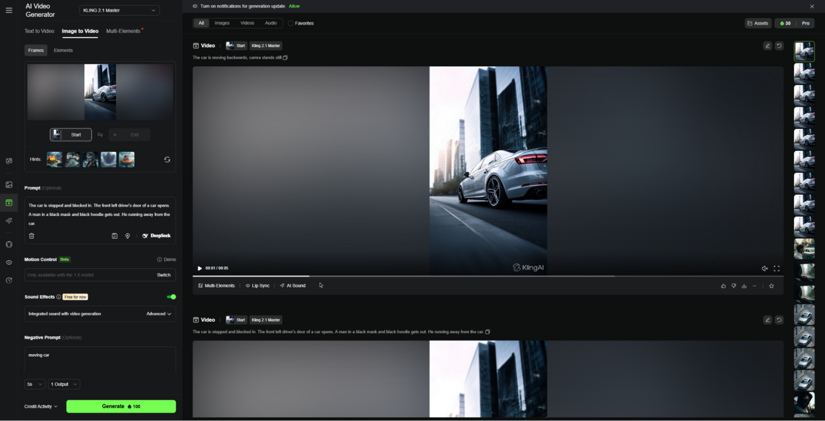 С помощью промтов описывали, как должны двигаться персонажи и объекты. Генерация движения происходила в несколько итераций: создавались разные варианты промтов, чтобы минимизировать артефакты. Особая сложность — взаимодействие двух персонажей, которое часто создаёт визуальные ошибки.